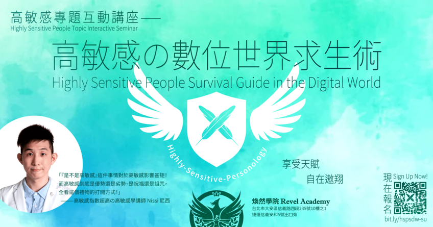 在這場講座中,我們不只將認真地剖析高敏感特質,也將討論高敏感如何能在數位世界中生存,更提供實用工具和策略,幫助您更好地適應和保護自己的身心健康。這不僅是一場講座,更是一場自我探索、自我保護、與自我提升之旅!🛤